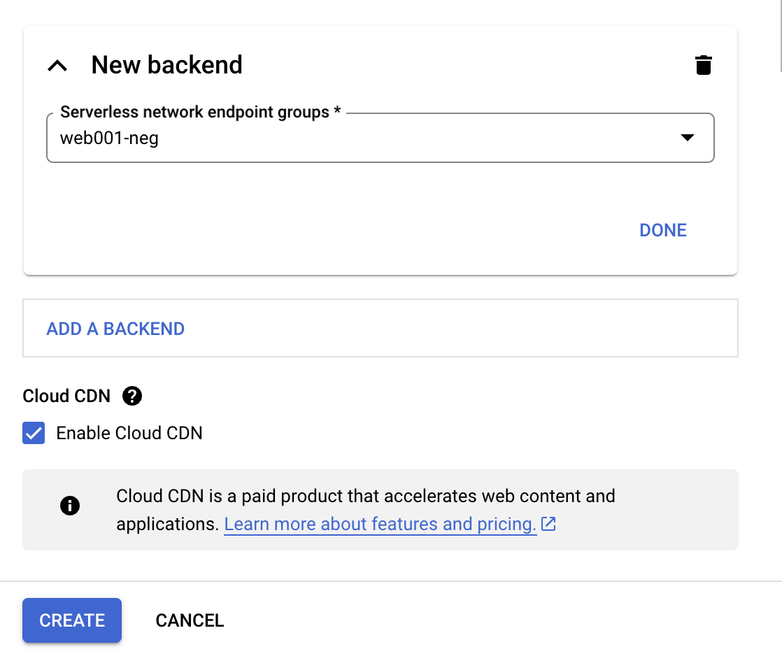 取名字 bk-1, 重要的是 Backend type 要選 Serverless Network Endpoint Group: