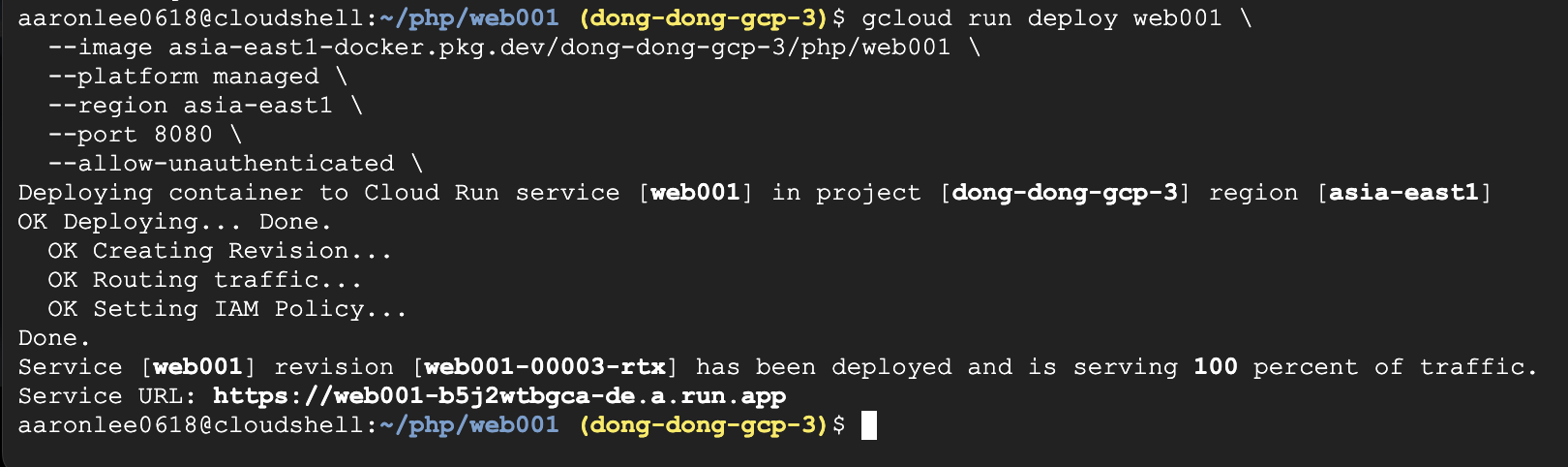 gcloud run deploy web001 \