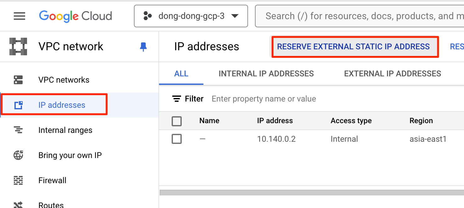 接下來去保留一個固定 IP,準備給 Load Balancer 用