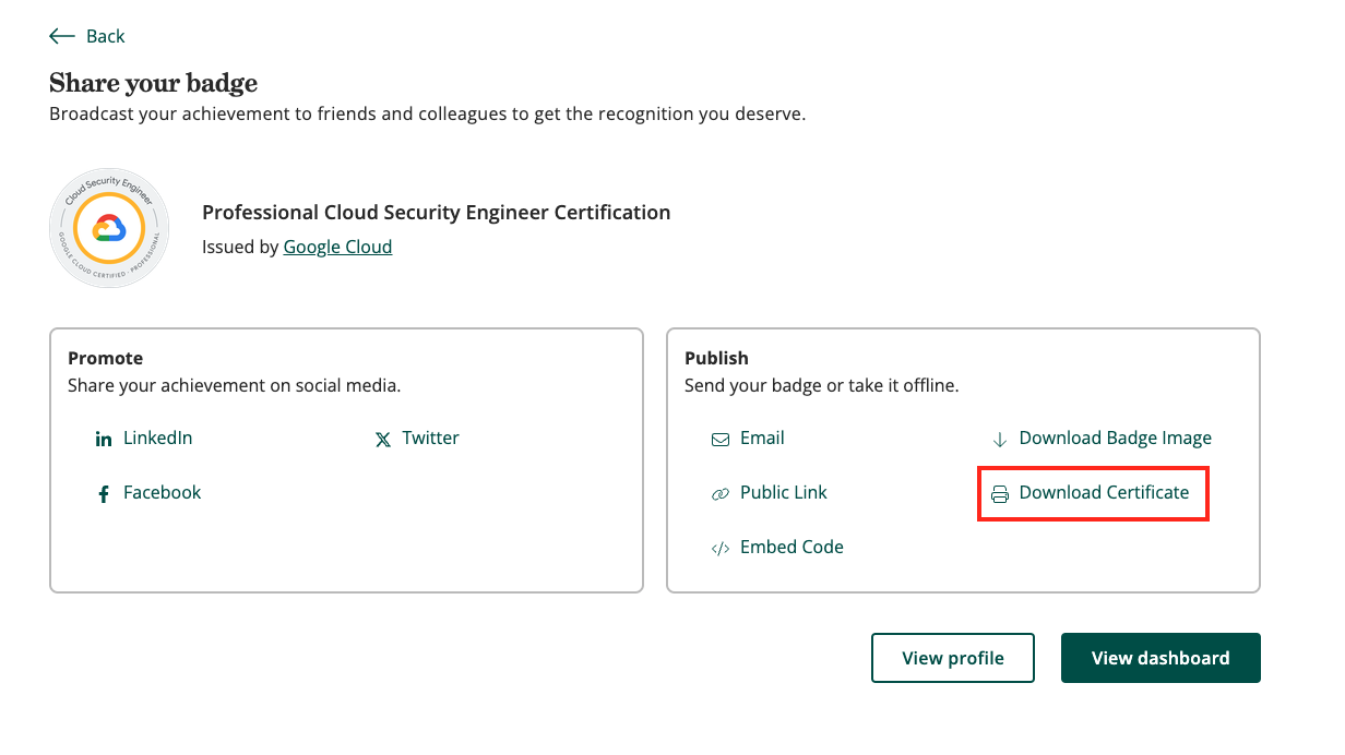 在 Badge Protfolio 看到考過的證照,點一個要下載 PDF 的