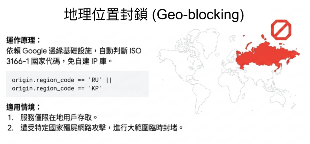 - 地理位置攻擊:封鎖來自特定國家的流量