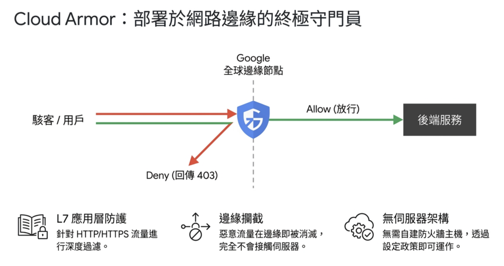 Cloud Armor 的核心功能:WAF 與 DDoS 防護