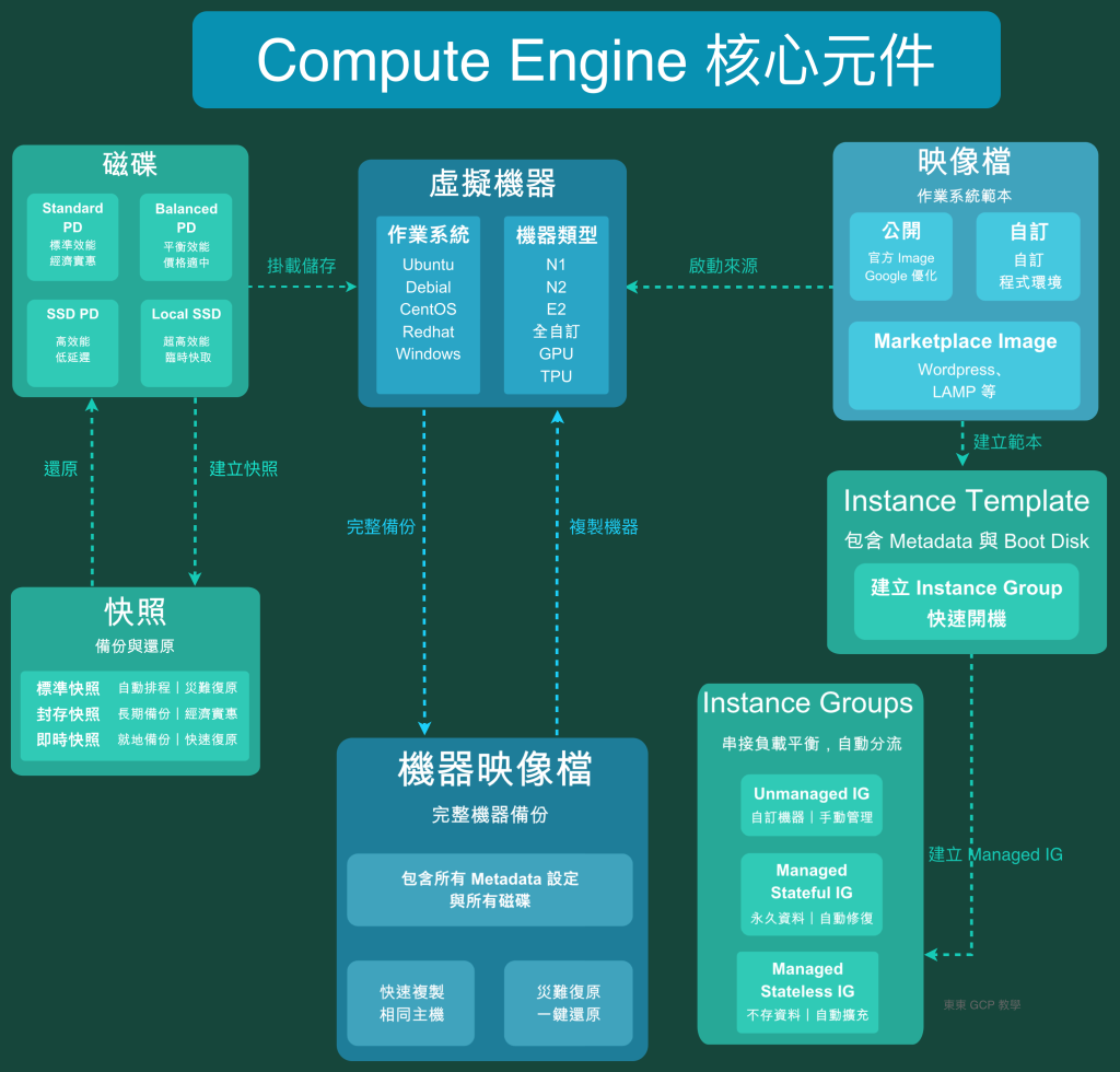 簡稱 GCE,就是 Google 的虛擬機器平台,你可以使用免費的 Linux Server,如 Debian、Ubuntu、CentOS、Fedora ,也可以使用付費的 Windows、Redhat、SUSE 等等。